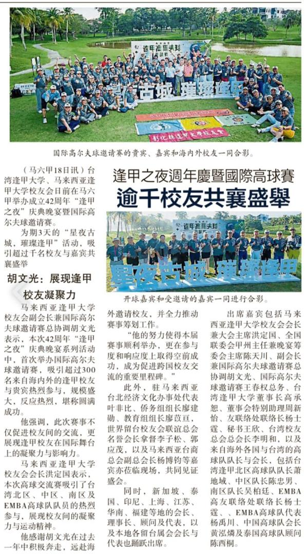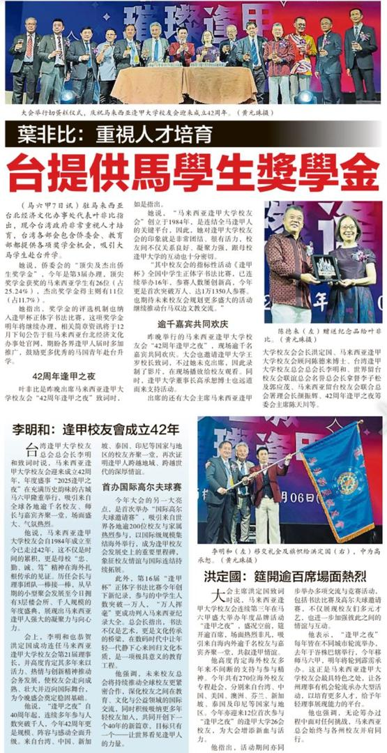 馬來西亞逢甲大學校友會42週年逢甲之夜暨**國際高爾夫球邀請賽**